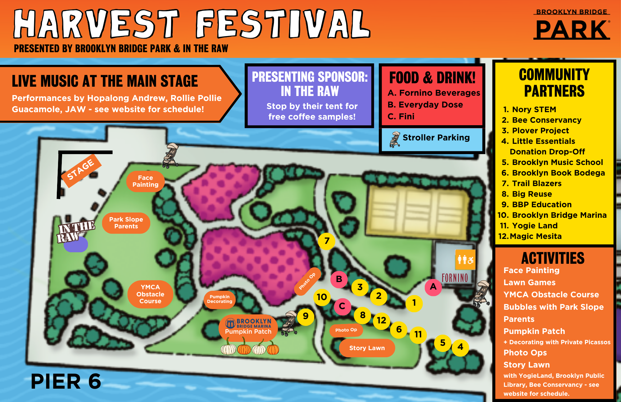 Join us this fall as we celebrate the changing of the seasons at the Brooklyn Bridge Park’s fifteenth annual Harvest Festival! Join for live music, arts and crafts, storytelling, lawn games, and more—including our signature pumpkin patch.
