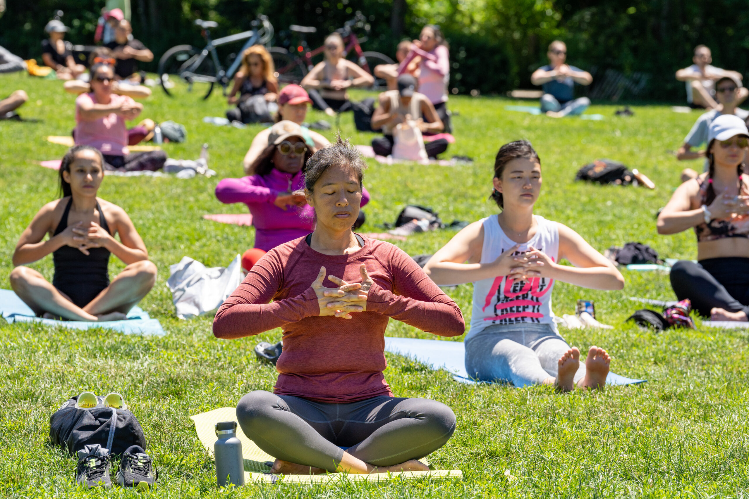 No equipment is required but participants are encouraged to bring their own yoga mats or towels, if desired, to use on the lawn. An extremely limited number of yoga mats will be available to borrow from Brooklyn Bridge Park staff.
